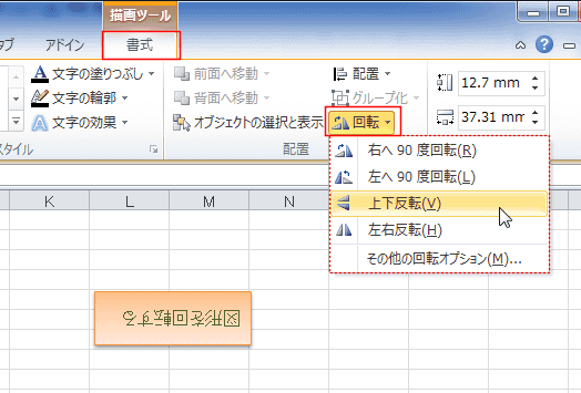 図形内の文字列が左右反転しました。