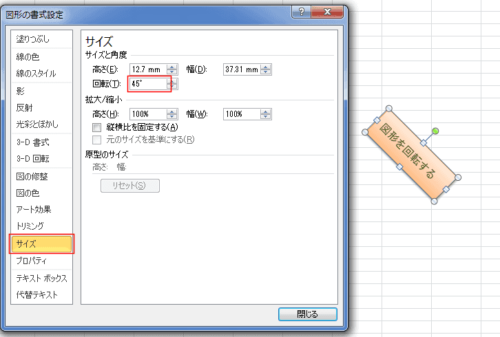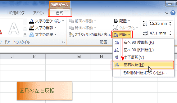 リボンから図形を回転する