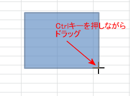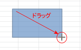 自分で大きさを指定するには、挿入したい大きさにドラッグします。
