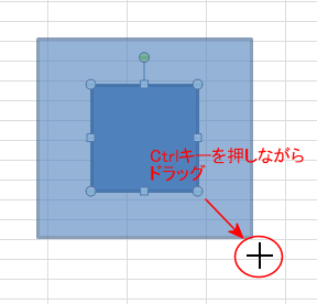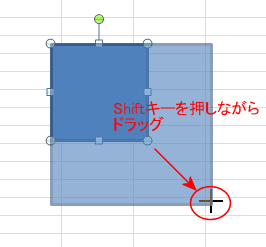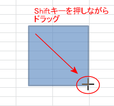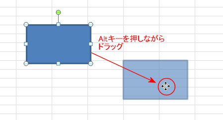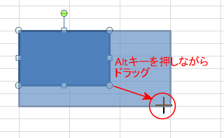 - 図形をセルの大きさに合わせる時も、[Alt]キーを押しながらハンドルをドラッグして図形を拡大/縮小します。