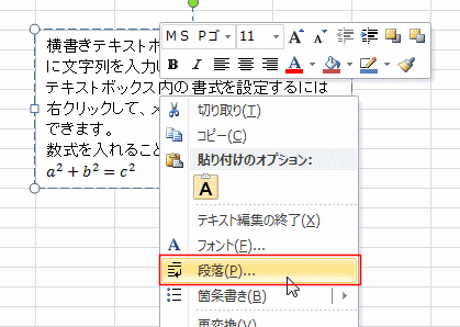 | 横書き/縦書きテキストボックスを描画する | テキストボックス内の段落書式を変更したい |