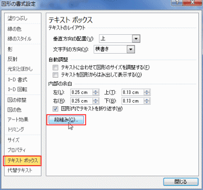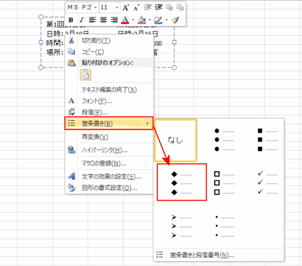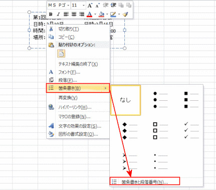 よねさんのExcelとWordの使い方|エクセル2010基本講座:目次|テキストボックスの操作|テキストボックスの段組みと箇条書き