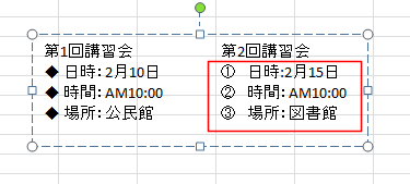 テキストボックス内で箇条書きや段落番号を設定する Topへ