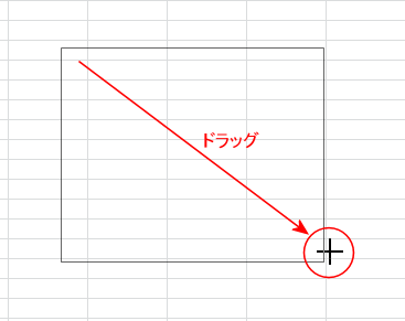 自分で大きさを指定するには、挿入したい大きさにドラッグします。