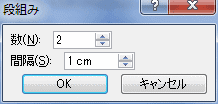 - 段数「2」、間隔「1cm」としました。