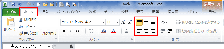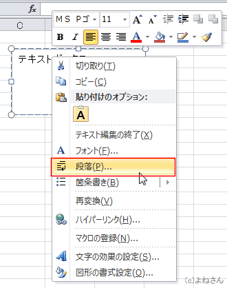 よねさんのExcelとWordの使い方|エクセル2010基本講座:目次|テキストボックスの操作|テキストボックスでの文字の配置
