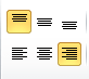 - 上段の3つが 上揃え、上下中央揃え、下揃え となっています。