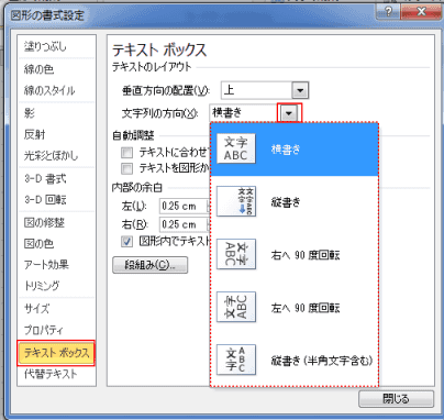 テキストボックスの文字の方向