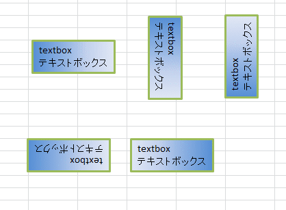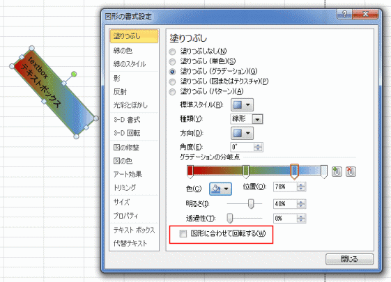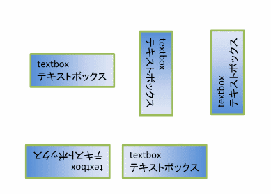 - 塗りつぶしの色でグラデーションをかけているときなど、テキストボックスを回転した時にはどうなるのでしょう?