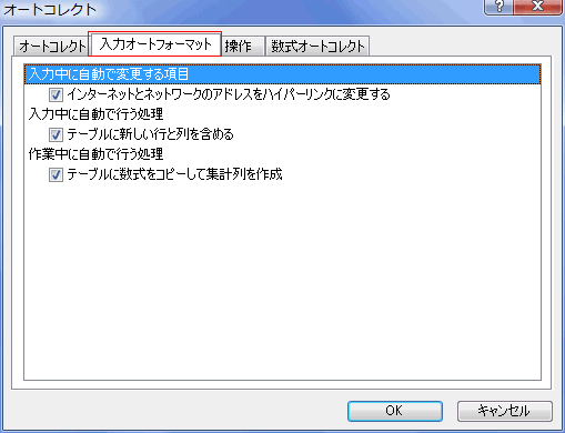 - 「入力オートフォーマット」タブもご覧ください。