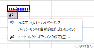 - オートコレクト オプション ボタンをクリックすると、ハイパーリンクの解除やオートコレクトの設定を変更できます。