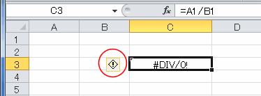 - このセルを選択すると、エラーチェックマークが表示されます。