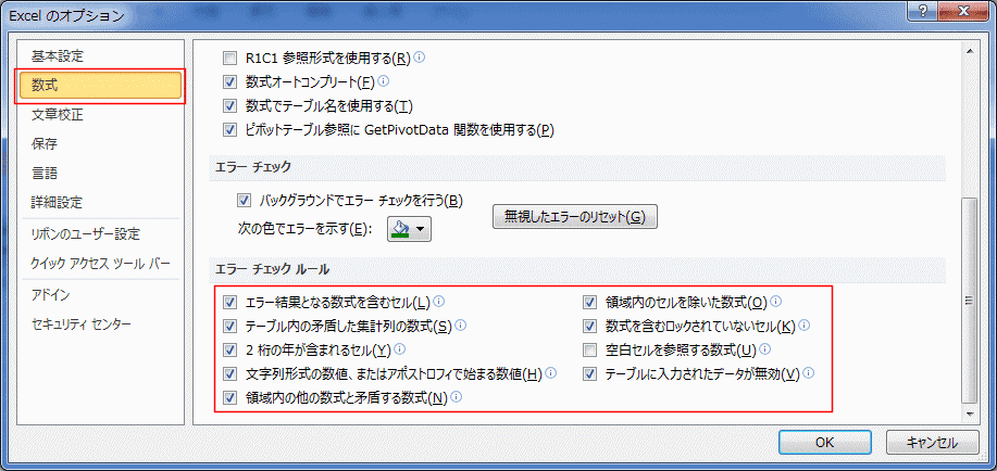 外したいエラーチェック ルールのチェックボックスをオフにします。