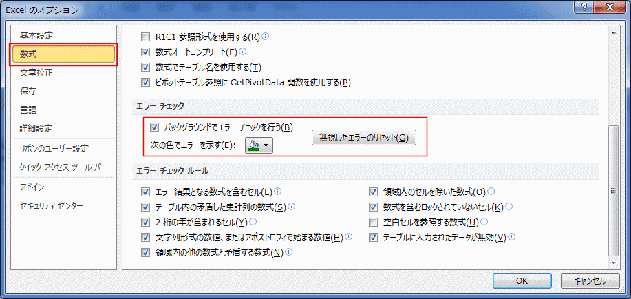 「バックグラウンドでエラーチェックを行う」のチェックを外します。