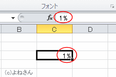 このケースではセルや数式バーに「%」が付いて表示されることで判別できます。