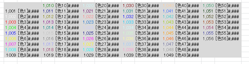 nは1〜56を指定することができます。色のインデックス番号です。0はフォントの色には指定できません。