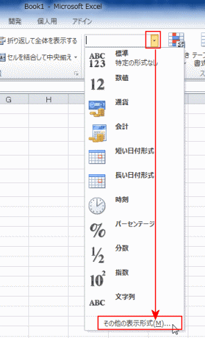 - セルまたはセル範囲を選択して、[表示形式]→[その他の表示形式]を選択します。
