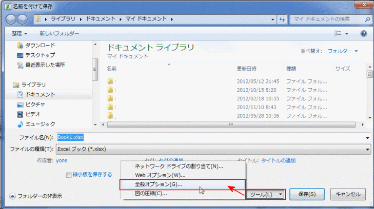 - [ツール]をクリックして、[全般オプション]を実行します。