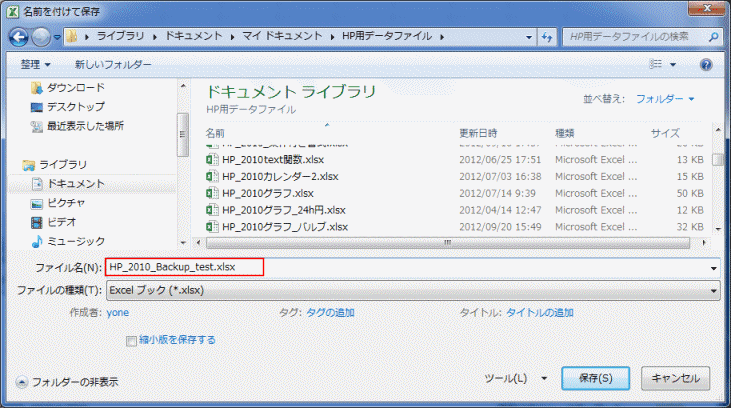 - ファイル名を入力して、[保存]ボタンをクリックして保存します。