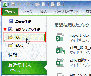 - [ファイル]タブをクリックし、[開く]を実行します。