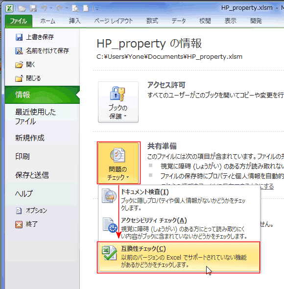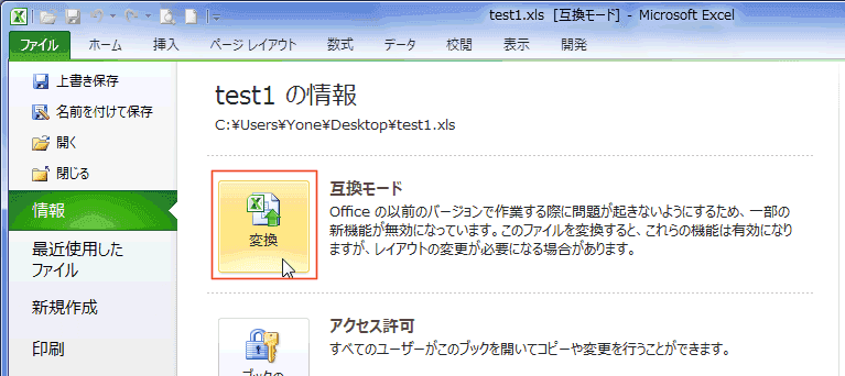 | Excel2010のファイル形式へ変更する | Excel2010のファイルを以前のファイル形式へ変更する |