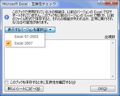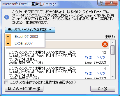 | Excel97-2003およびExcel2007との互換性チェック結果 | Excel2007との互換性チェック結果 |