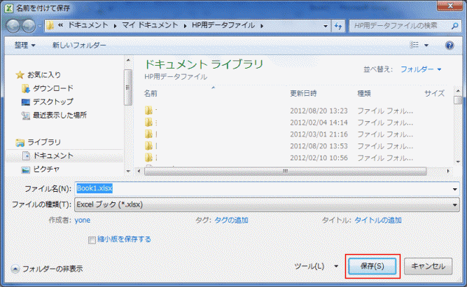 - 名前を付けて保存で[保存]ボタンをクリックします。