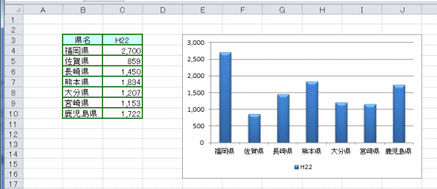 - 縦棒グラフを例にして、絵グラフを作成してみます。