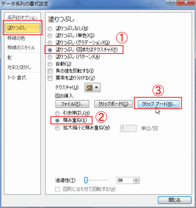「塗りつぶし(図またはテクスチャ)」にチェックを入れます。