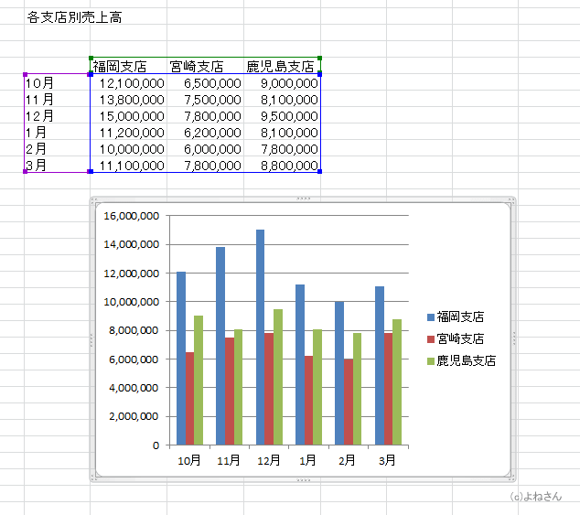 よねさんのExcelとWordの使い方|エクセル2010基本講座:目次|グラフの使い方|ボタン一つでグラフを作成する