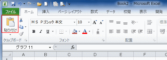 - 貼り付けたいシートで、[ホーム]タブの[貼り付け]を実行します。