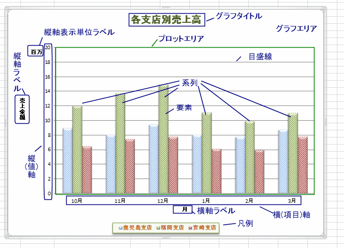 - 下図にグラフの各部位の名称を示します。