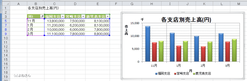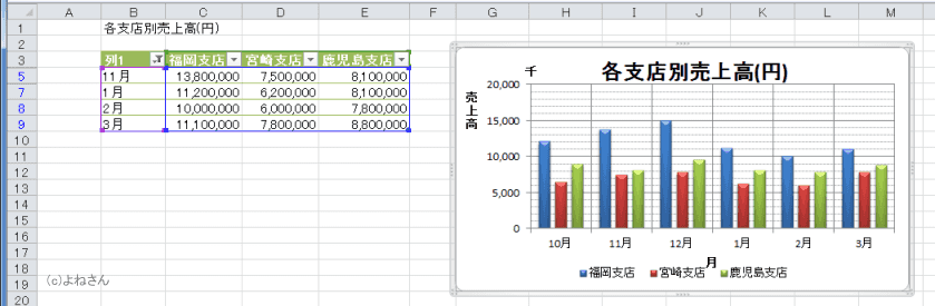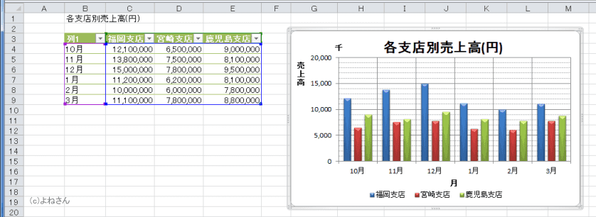 よねさんのExcelとWordの使い方|エクセル2010基本講座:目次|グラフの使い方|非表示セルもプロットする/可視セルのみプロットする