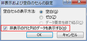 - 「非表示の行と列のデータを表示する」にチェックを入れます。
