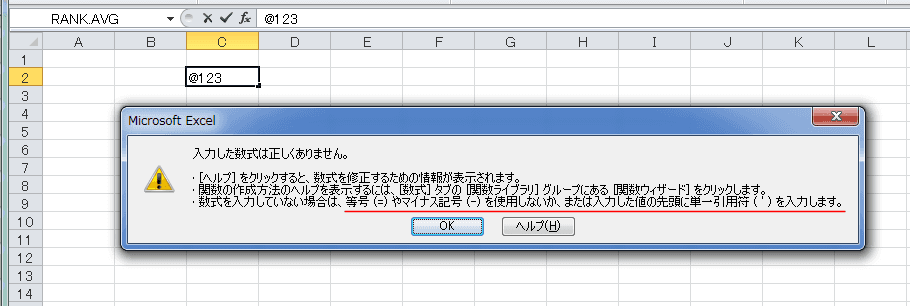 - 先頭にアポストロフィを入力して '@123 と入力すればよいということです。