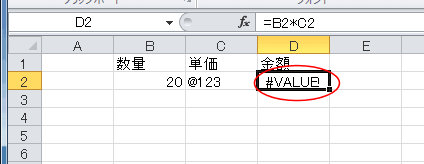 - ところが、計算式を入力すると #VALUE! エラーとなります。