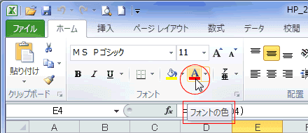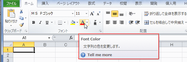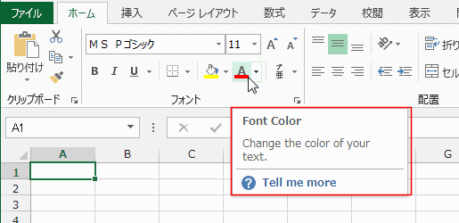 - ところが、隣のフォントの色を選択しているときのポップヒントです。