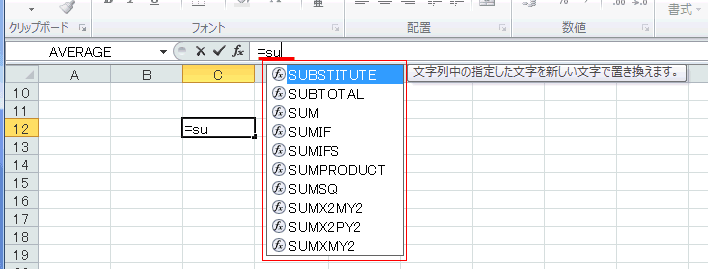 - 関数を使った数式の入力時や修正時に関数のヒントが表示されます。