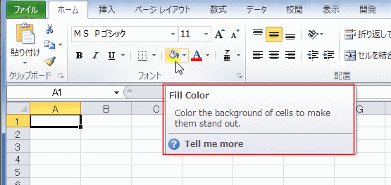 - 塗りつぶしの色を選択しているときのポップヒントです。すべて英語の表示になっています。