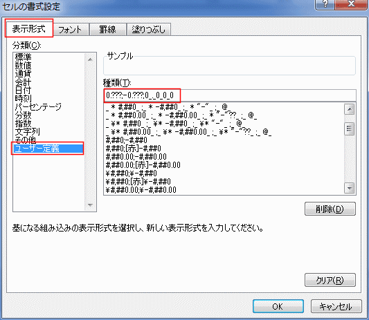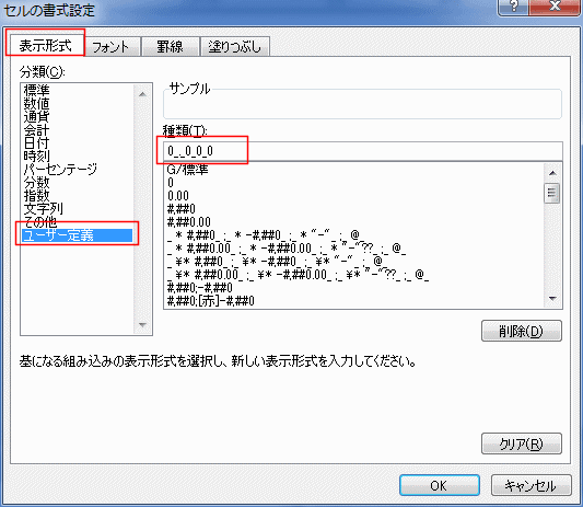 「ユーザー定義」を選択して、「0_._0_0_0」と入力します。