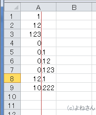よねさんのExcelとWordの使い方|エクセル2010基本講座:目次|書式・表示形式|桁数の異なる数値を小数点で揃えて表示したい