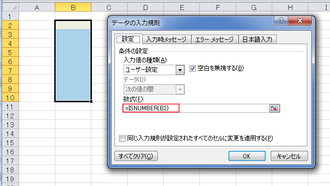 - 実は、上記の=LENB(B2)=LEN(B2) では数字の入力が可能です。