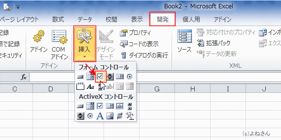よねさんのExcelとWordの使い方|エクセル2010基本講座:目次|フォーム・ActiveX・マクロ(VBA)|チェックボックスを使って入力したい
