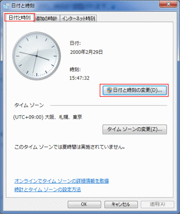 - [日付と時刻]タブを選択し、[日付と時刻の変更]ボタンをクリックします。
