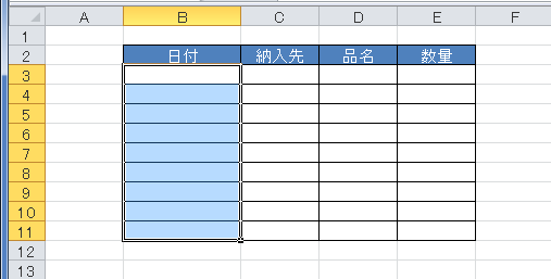 日付を入力するセル範囲 B3:B11 を選択しました。