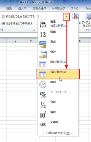 ここでは、[ホーム]タブで[長い日付形式]を選択しました。