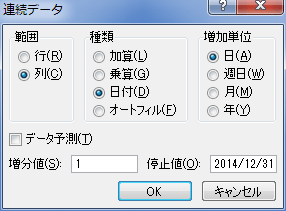 増分値は「1」とし、停止値は「2014/12/31」とします。