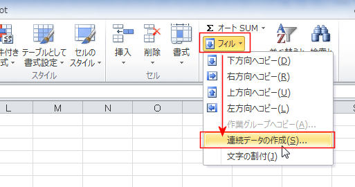 Sheet2のB3セルを選択して、[ホーム]タブの[フィル]→[連続データの作成]を実行します。