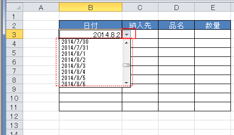 - 入力する日付をドロップダウンリストから選択する例を書いてみます。。