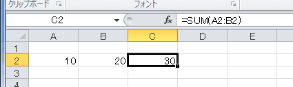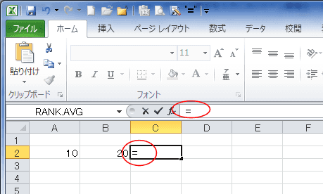 - 数式の入力は「=」を入力するところから始めますが、イコールをマウスから入力するためのコマンドボタンがありますので、それを利用する方法です。